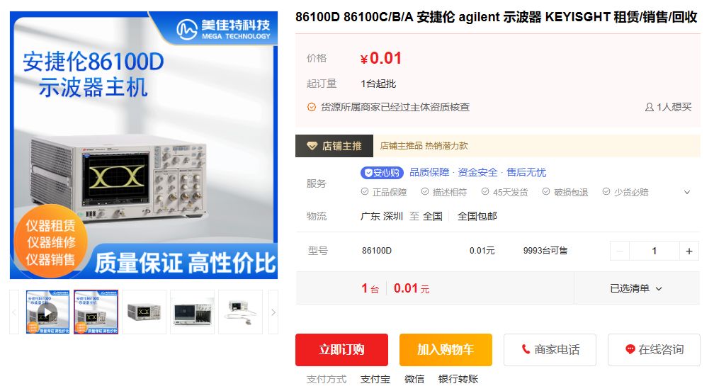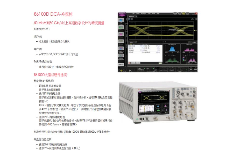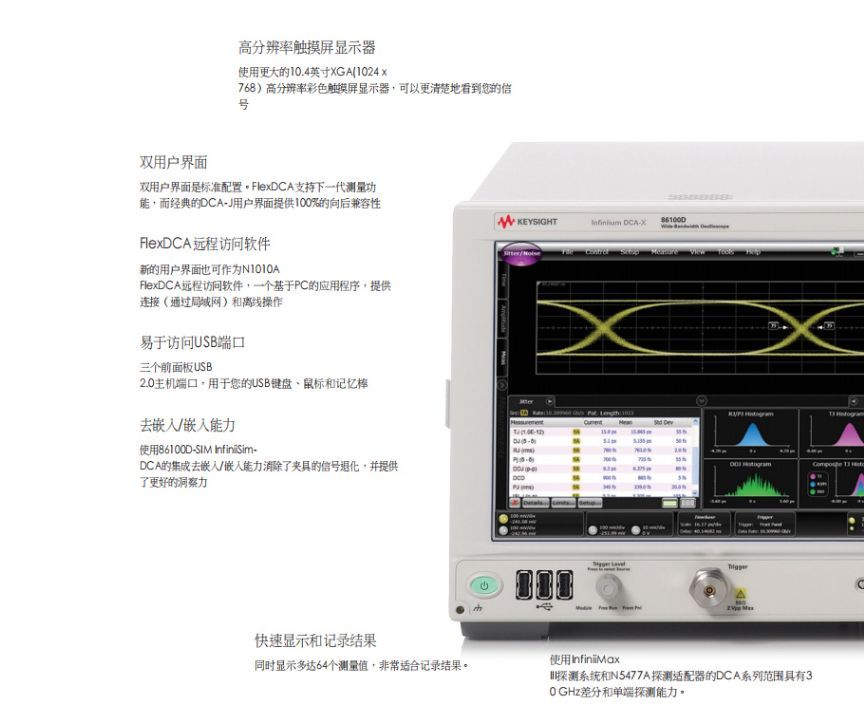 86100D有哪些特点?86100D是一款高性能的宽带宽示波器,可以精确测量高速数字设计的波形特性和质量。86100D有以下一些特点:
