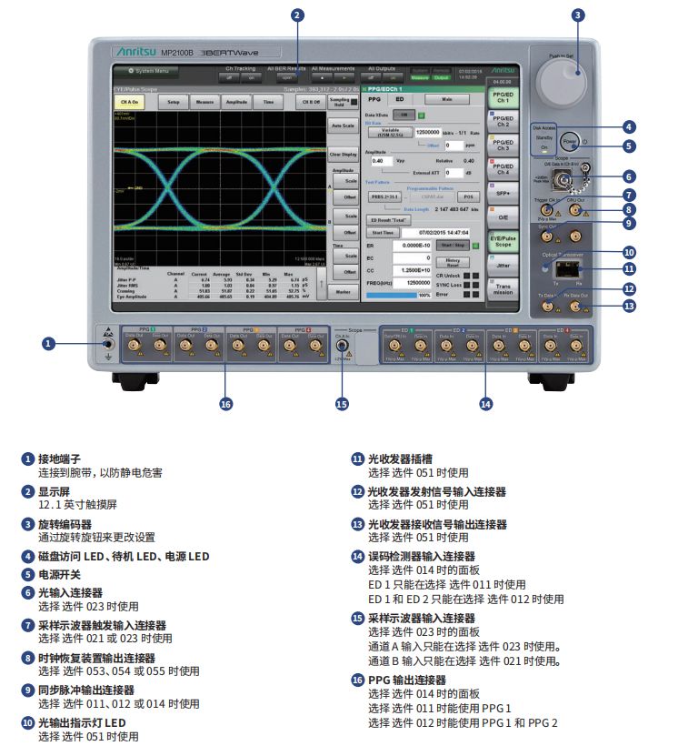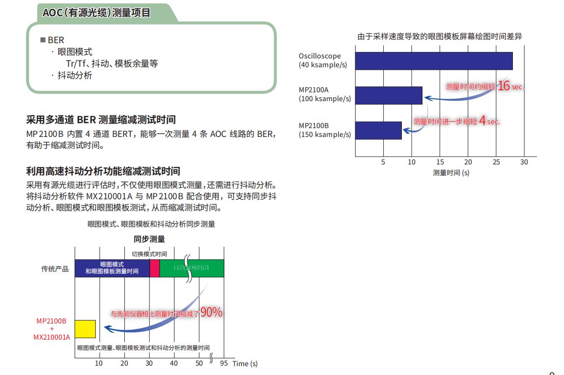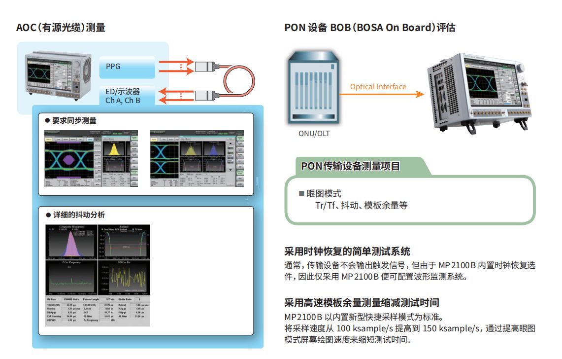 MP2100B PPG可输出Tr/Tf为24 ps、抖动为1ps的高质量信号。此外,ED输入灵敏度高达每分钟10mVp-po出色的性能有助于提高DUT产量。