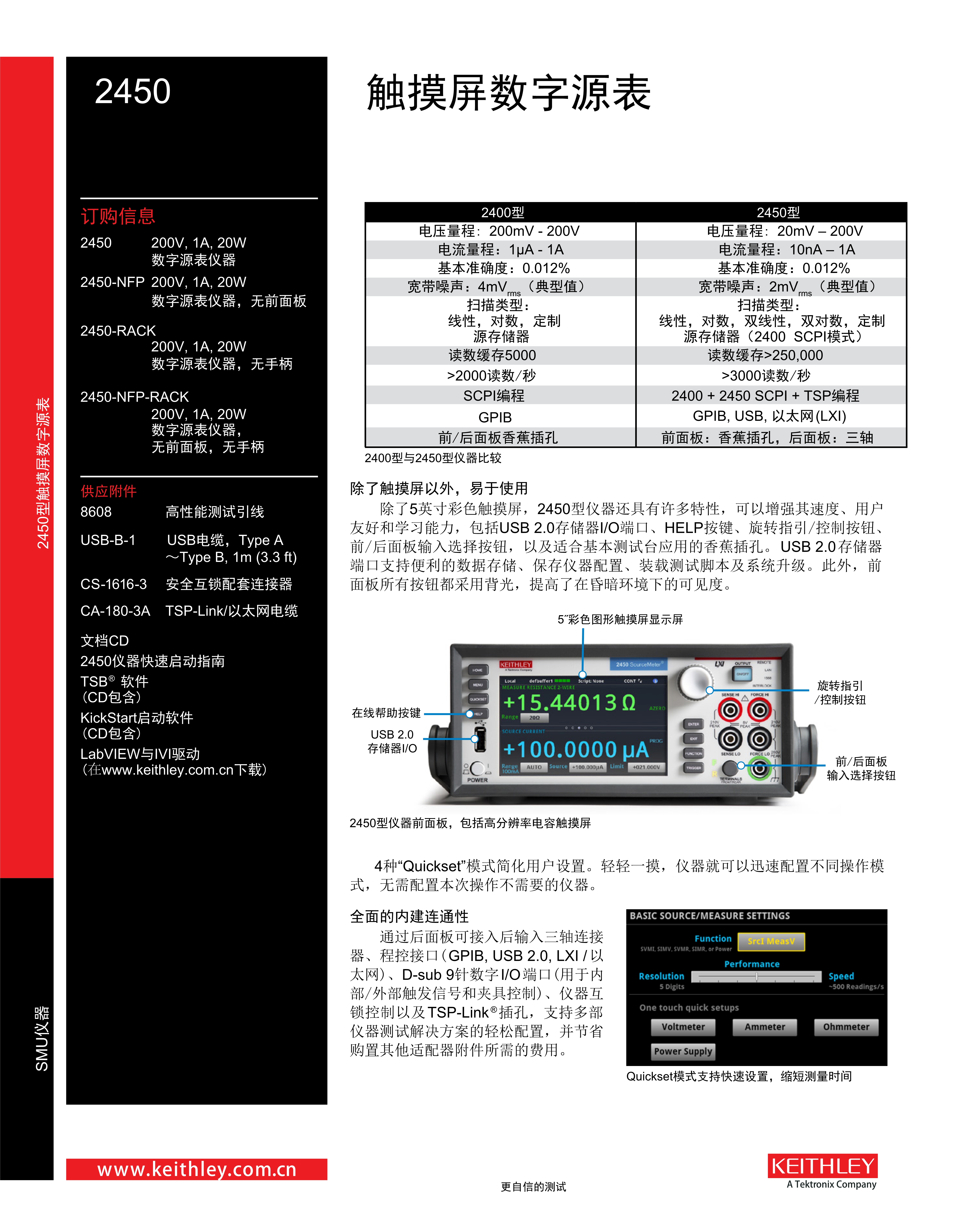 吉时利2450产品是一款高性能的数字源表,具有以下特性: