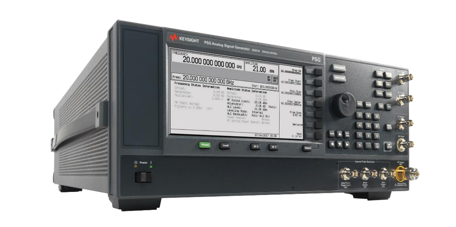 E8257D PSG模拟信号发生器凭借其高输出功率、优异的电平精度、优秀的相位噪声性能、广泛的频率覆盖范围以及丰富的功能选项,成为了开发雷达系统、卫星通信、陆地微波无线系统及元器件的理想工具。