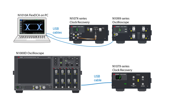在自动测试系统环境中,通过LAN将主测试系统PC连接至低成本的电脑上,FlexDCA界面驻留在第二台PC上。然后,第二台PC通过USB连接至N1092A。